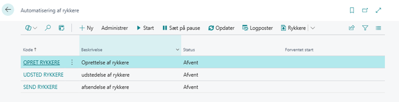 Når en rykker er oprettet, skal den "gøres officielt". Det håndteres også automatisk. Rykkeren ændrer status, så den er klar til at blive afsendt.