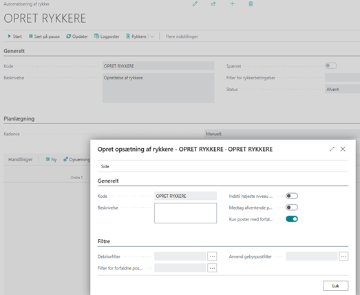 Kort sagt: Når rykkerbetingelser og rykkerniveauer er på plads, ligger hele logikken klar til brug i automatiseringen.