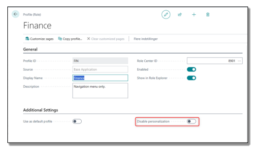 - Sæt flueben i feltet Deaktiver personlig tilpasning.