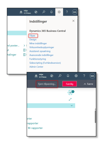 - Vælg fjern tilpasning