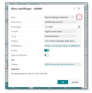 Gå til Mine indstillinger via tandhjulet i højre hjørne og find den rolle, der bedst afspejler dit ansvarsområde. Dette er dit fundament, som du herefter kan bygge videre på.